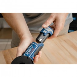 Solo(without batteries) Technical data of DEDRA MAUS DED7339 cordless angle grinder: Voltage: 12 V Speed: 12000–19500 rpm Disc size: 76 × 10 mm