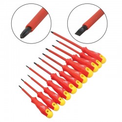A functional set of 11 insulated screwdrivers designed for professional electrical work.