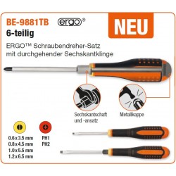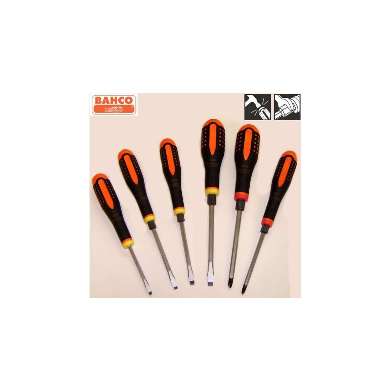 Flat: 3.5mm-4.5mm-5.5mm-6.5mm Cross: PH1; PH2 Ergonomic handles. Forged. Professional. Made in Spain.