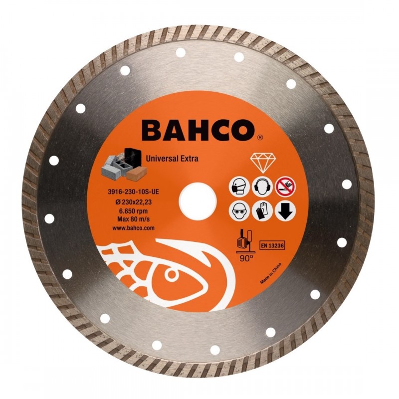 • Suitable for dry or wet cutting • In accordance with EN13236 • 3916- Universal Extra quality: • 10mm continuous diamond rim • For universal cutting of general building materials and stone. • Long product life • Hot pressed diamond segment • 3917- Universal quality: • 7mm sintered diamond segments • For use on concrete slabs and general purpose building materials