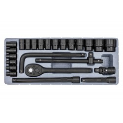 Sockets 1/2" 38 mm. 18 pcs.: 8, 9, 10, 12, 13, 14, 15, 16, 17, 18, 19, 20, 21, 22, 24, 27, 30, 32 mm.;