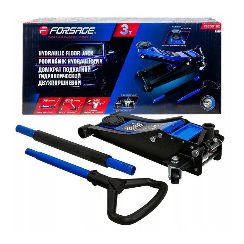 Lifting height 75-510mm Maximum lifting weight 3 tons. Double lifting pump - for faster lifting. Weight 30kg Humiliated. With protective rubber RockForce-SILver