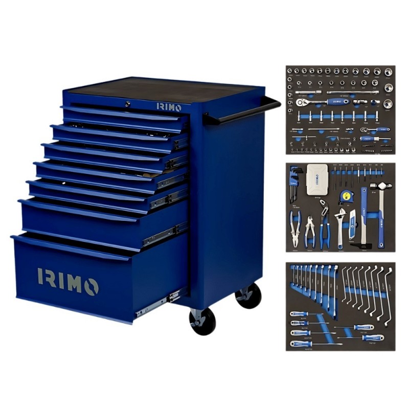 Irimo įrankių vežimėlis ant ratukų, 7 stalčiai, mėlynas, 208 įrankiai/priedai
