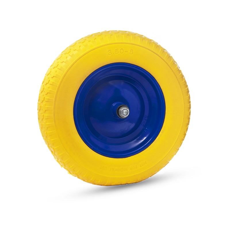 Wheel for wheelbarrow PU solid 3.50x8 with metal disc and axle