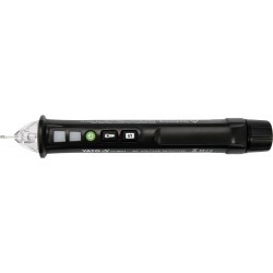 YATO inductive voltage tester YT-28313. Designed for voltage detection in electric wires. Acting on the principle of induction, it contactlessly indicates whether the wires are live. • 2-band induction test: 12-1000 V and 48-1000 V • signaling of detected voltage in wires by means of LED diode and sound signal • elimination of direct contact of the tip with the insulated wire increases the safety of use and accelerates work • sensitivity adjustment allows detecting wires under voltage also in the walls • continuity test • automatic switch-off function • flashlight function • casing resistant to impacts and falling from a height of 2 m • 2 AAA 3 V batteries included