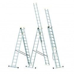 The three-section multifunctional ladder DRABEST "PRO" 3x8 model is an extremely durable product for the most demanding customers. The perfect work tool for professionals looking for the highest standards of safety and durability.