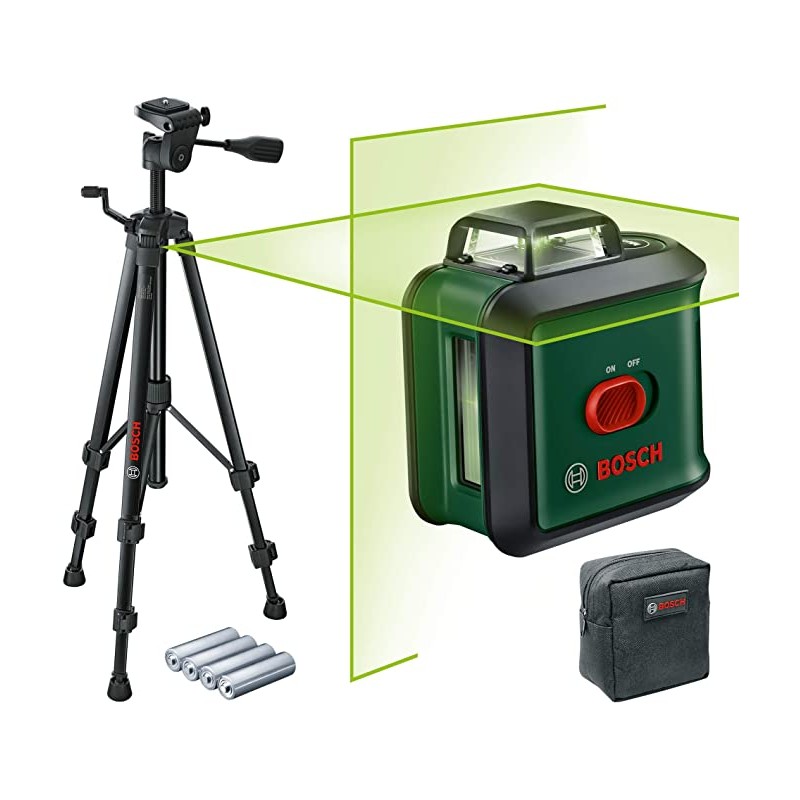 Excellent visibility of the laser lines and precise alignment throughout the room is guaranteed with the UniversalLevel 360, which combines precision, versatility and convenience. Self-leveling by projecting 360° horizontal and 120° vertical laser lines ensures convenient and fast alignment, while the green laser beam guarantees better visibility so you can work easily even in bright light. Do you want to install false ceilings or curtain rods evenly? Need to align elements such as shelves and paintings? Or are you creatively gluing tiles? Take action and unleash your creativity, and the tilt function will help you get the job done by drawing diagonal lines.