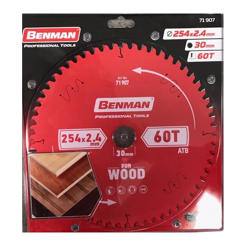 Diameter 254mm Hole 30mm (ring to 25.4mm) Number of teeth 60 The thickness of the cut is 2.4 mm Coated with Teflon