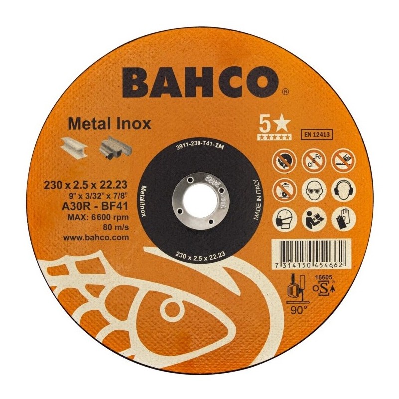 Abrazyvinis metalo ir nerūdijančio plieno pjovimo diskas Bahco A46R INOX+Fe T41 115x1.6x22.23mm