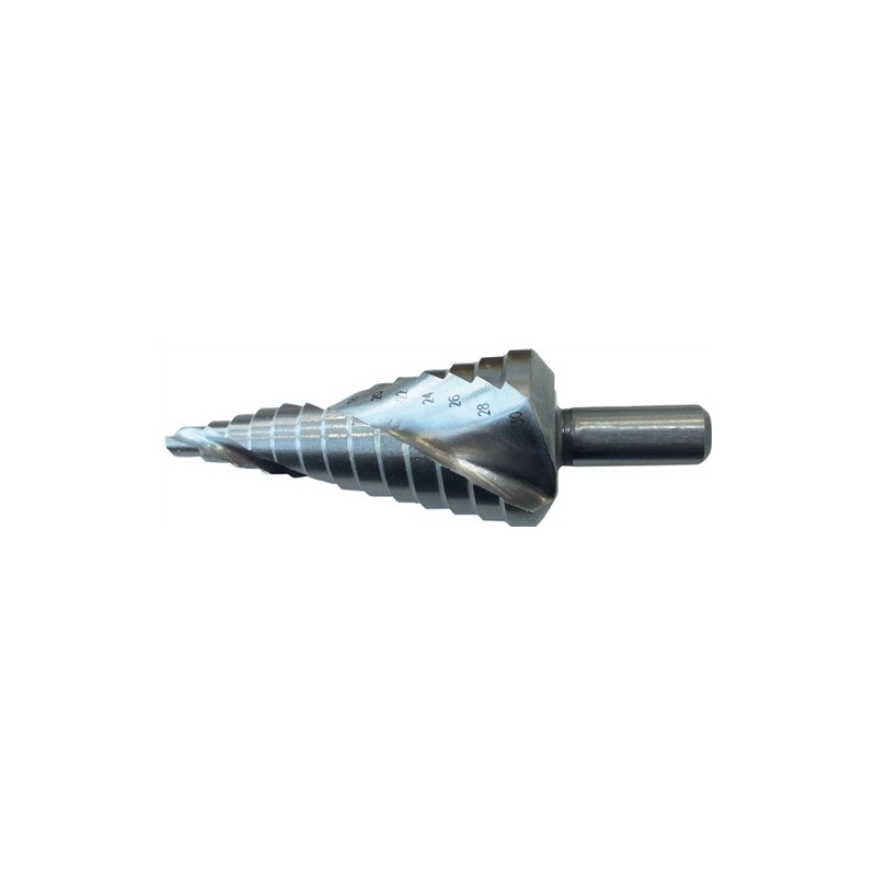 Steel HSS Co (suitable for drilling stainless steel) Spiral-shaped Steps 6-8-10-12-14-16-18-20-22-24-26-28-30mm Manufacturer: PTG Germany