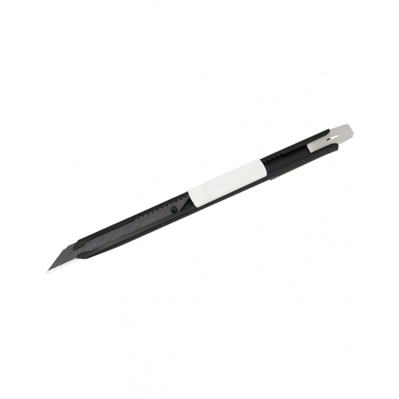 The Tajima DORA cutter DC395BK-EUR is a high-precision utility knife designed for clean, accurate cuts in thin materials such as paper, foil, and film. Its slim 9mm profile, advanced 30° RAZAR BLACK snap-off blade, and auto lock mechanism make it an excellent choice for detailed work where control and sharpness are required. The coated steel handle offers durability and a comfortable grip, while the integrated driver-tip adds versatility for light prying or screw-driving tasks. Key features and specifications: • 9 mm wide snap-off RAZAR BLACK blade with a 30° tip for fine, precise cutting • Auto lock mechanism for secure blade positioning • Extra-hard blade guide and steel fin for enhanced durability and stability • Premium SK-120 steel blade, optimized with Japanese heat-treating technology • Coated steel handle for a comfortable, long-lasting grip • Stainless steel attachment clip for easy portability • Driver-TIP design allows for light prying or screw-driving • Compact length: 105 mm • Blade replacement: Snap-off (break-off) type The Tajima DORA cutter DC390B is ideal for tradespeople, craftsmen, designers, and hobbyists who demand precision and reliability in their cutting tools. It excels in applications such as crafting, graphic design, model making, packaging, and any task that requires accurate trimming in hard-to-reach or narrow spaces. SKU: DC390B EAN: 4975364111883
