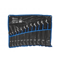 A set of angled ring wrenches that will meet your highest expectations. Made from CrV tool steel, they guarantee strength and durability, providing reliable tools for work.