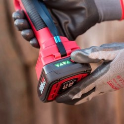 Į komplektą įeina: žirklės, 1 Li-ion 20V 4.0Ah akumuliatorius, įkroviklis, galandinimo akmuo, 2.5, 4.5, 5 mm HEX raktai, veržliaraktis ir alyvos butelis