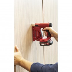 Komplekte yra: akumuliatorinis viniakalis-kabiamušis, 1 vnt. 20 V 2.0 Ah akumuliatorius, įkroviklis, 4 kompektai vinių ir kabių, plastikinis dėklas ir naudojimo instrukcija