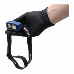 High-quality, rechargeable COB/OSRAM 480LM LED headlamp equipped with two light sources, touchless activation function and a magnet.