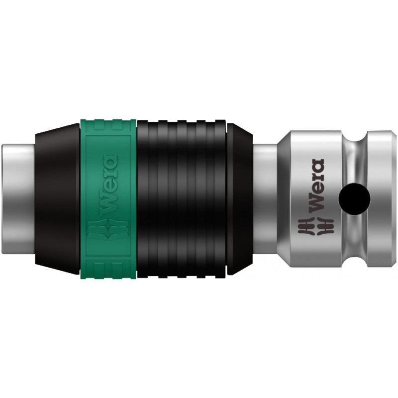 Adaptor from square to hex. For 1/4" hex bits as per DIN ISO 1173-C 6.3 and E 6.3 and Wera connecting series 1 and 4; with quick-release chuck. Bit Adaptor: 1/4" x 37mm