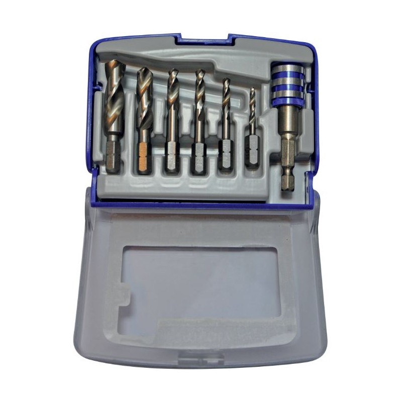 Metalo grąžtų rinkinys 3-10mm, 7vnt, HSS, 1/4" kotelis, "Half-box"