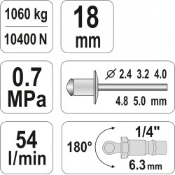 Pneumatinis kniediklis 2,4-5,0mm YATO