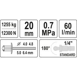 Pneumatinis kniediklis 2,4-6,4mm YATO