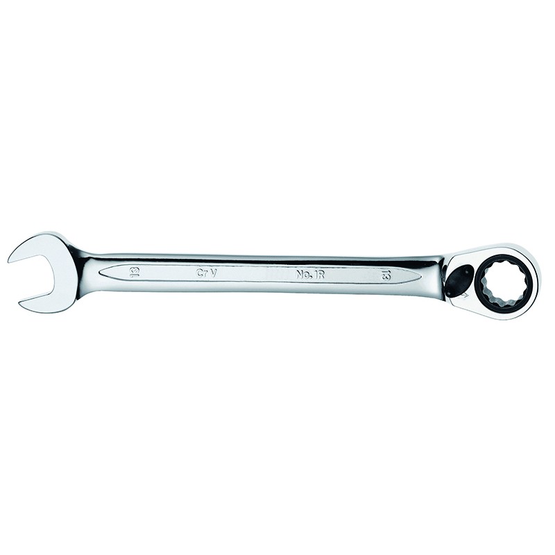 • Open end angle 15° with a slimmer head for improved accessibility • Ring end angle 15° for knuckle clearance or better grip • 5° action angle • Switch for quick change of right and left direction • Larger and bi-directional size marking for easy identification • Ratchet in the ring for high productivity application • 12-point Dynamic-Drive™ profile provides longer life for screws and nuts • Chrome plated micro-matte finishing provides high quality surface • High-performance alloy steel • Standards: ISO 1711-1 and DIN 3113