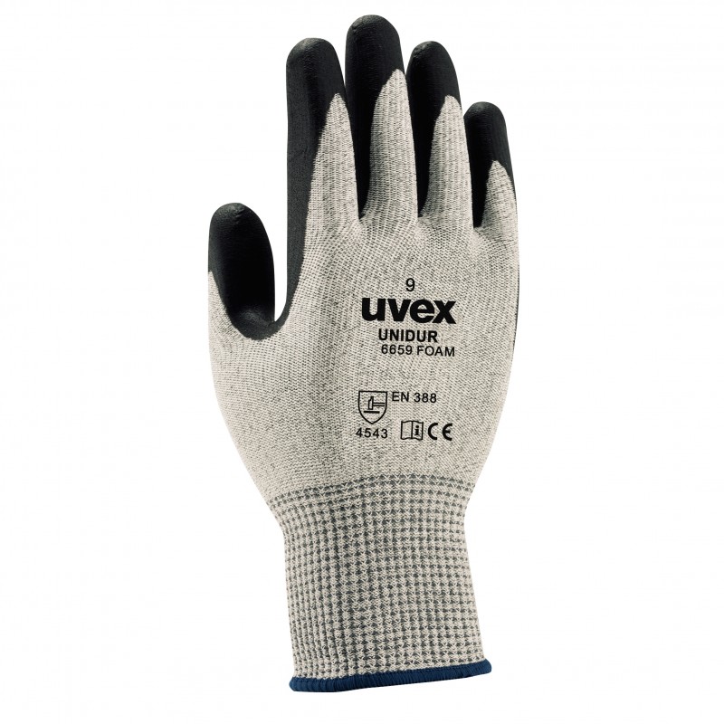 „Uvex unidur 6659 foam" yra lengvos apsauginės pirštinės su apsauga nuo pjūvių (5 / C lygis) bei NBR putų danga. Puikiai tinka surinkimo darbams.