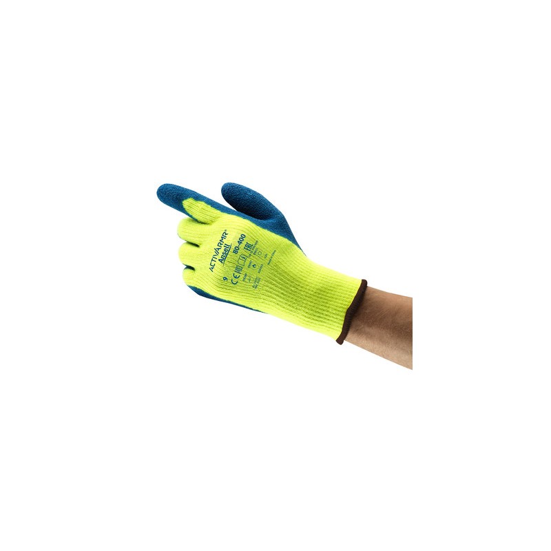 ActivArmr® 80-400 – Darbo pirštinės su fliso pamušalu, užtikrinančios saugų ir patogų darbą šalčio sąlygomis Gamintojas: Ansell Modelis: 80-400 Ankstesnis pavadinimas: Powerflex® 80-400 Kategorija: II (vidutinės rizikos asmeninės apsaugos priemonė) Padidintas matomumas: asmeninei apsaugai prastai apšviestose darbo vietose Grublėta delno danga: pagerintas sukibimas tiek drėgnose, tiek sausose sąlygose Fliso pamušalas: užtikrina efektyvią rankų apsaugą žemoje temperatūroje Aprašymas: Padidintas matomumas: šios apsauginės pirštinės suteikia apsaugą nuo įpjovimų ir dilimo prastame apšvietime, dėka vientiso ryškiai geltono kilpinio akrilo pamušalo Patobulintas sukibimas: ActivArmr® 80-400 terminės pirštinės turi ryškiai mėlynos spalvos grublėtą delno dangą, kuri užtikrina geresnį sukibimą tiek drėgnose, tiek sausose darbo sąlygose Optimizuota izoliacija: su fliso pamušalu ir natūralaus latekso danga, šios terminės darbo pirštinės apsaugo nuo temperatūros iki -15˚C/5˚F (ilgo kontakto) ir iki -30˚C/-22˚F (pertraukiamo/trumpalaikio kontakto), taip pat gali atlaikyti karštus komponentus iki 250˚C/480˚F 15 sekundžių Pažangi ergonomika: ActivArmr® 80-400 pramoninės pirštinės ergonomiškai priglunda, suteikia aukštą komforto lygį, lankstumą ir judrumą Atitinka standartus: EN 388:2016 + A1:2018 – mechaninės apsaugos įvertinimas 2 2 3 1 C EN ISO 21420:2020 – bendrieji reikalavimai apsauginėms pirštinėms Rekomenduojama naudoti: Produktų pakavimas ir krovimas Statyba Darbui žiemą lauko sąlygomis Pagrindinės pramonės šakos: Statyba Miškų ūkis