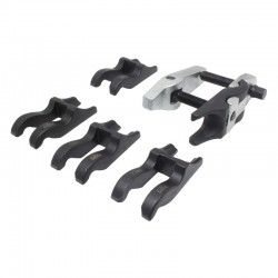 Specialized SATRA set adapted for dismantling ball joints in various sizes in passenger cars, vans and SUVs with the quick possibility of replacing the jaws with a different size.