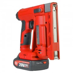 Komplektā ietilpst: akumulatora naglotājs-skavu pistole, 1 gab. 20 V 2,0 Ah akumulators, lādētājs, 4 naglu un skavu komplekti, plastmasas korpuss un lietotāja rokasgrāmata