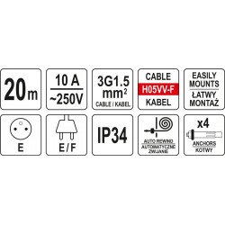 Automātiskais elektriskais pagarinātājs. spolē 20m+1m YATO