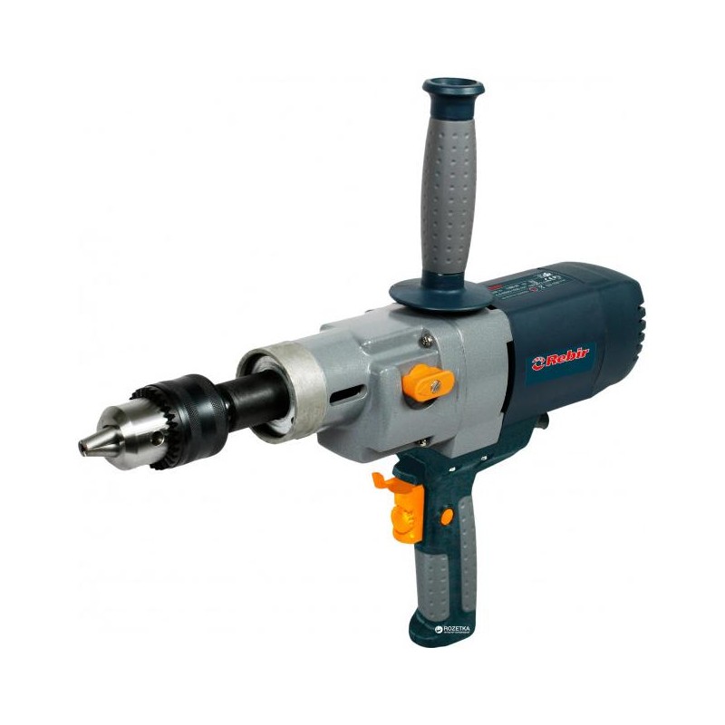 Spriegums: 230 V Jauda: 2000 W Ar reduktoru: Otrais pārnesums: 0–330/0–500 apgr./min Urbja stiprinājums: patrona līdz 16 mm vai Morzes konuss 2. Svars: 6,3 kg Papildus sānu rokturis iekļauts komplektā. Ražotājs: Rebir (Latvija)