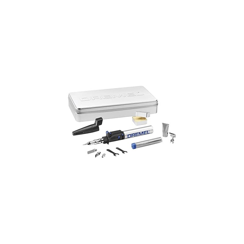 6 dažādi piederumi: lodēšanas uzgalis, griešanas nazis, karstais nazis, platas liesmas sprausla, reflektors, karstā gaisa pūtēja galva, lodāmurs, lodēšanas sūklis + sūkļa kaste, skārda instrumentu kaste.