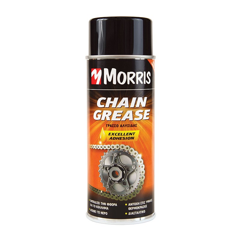 Aerosola eļļa ķēdēm MORRIS 400ml 28581 Atgrūž ūdeni. PTFE (ar teflonu). VKA>1500 Ražotājs: MORRIS Holland