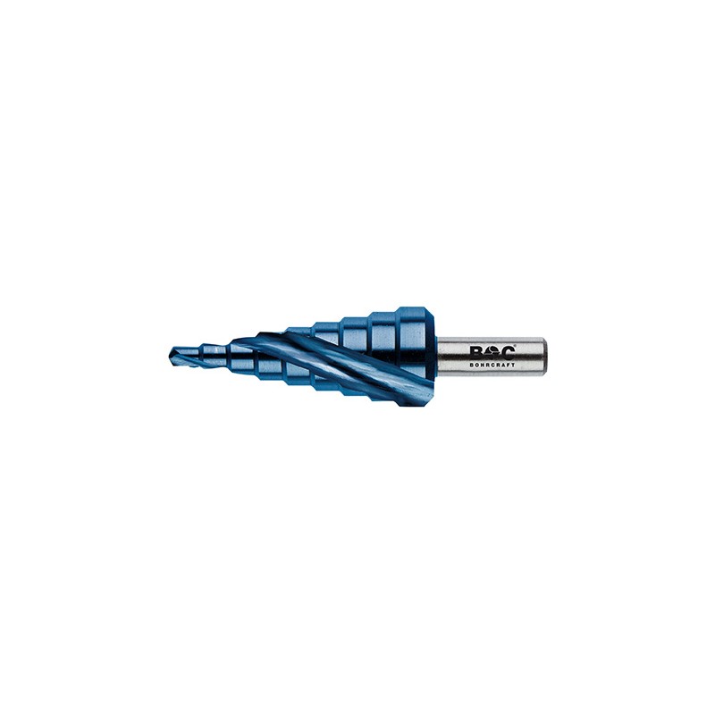 4–39 mm Pakāpiens 3 mm HSS-E tērauds (ar kobaltu) Blue+ pārklājums ilgākam kalpošanas laikam Kāta diametrs 10 mm Urbja garums 107 mm Bohrcraft Germany