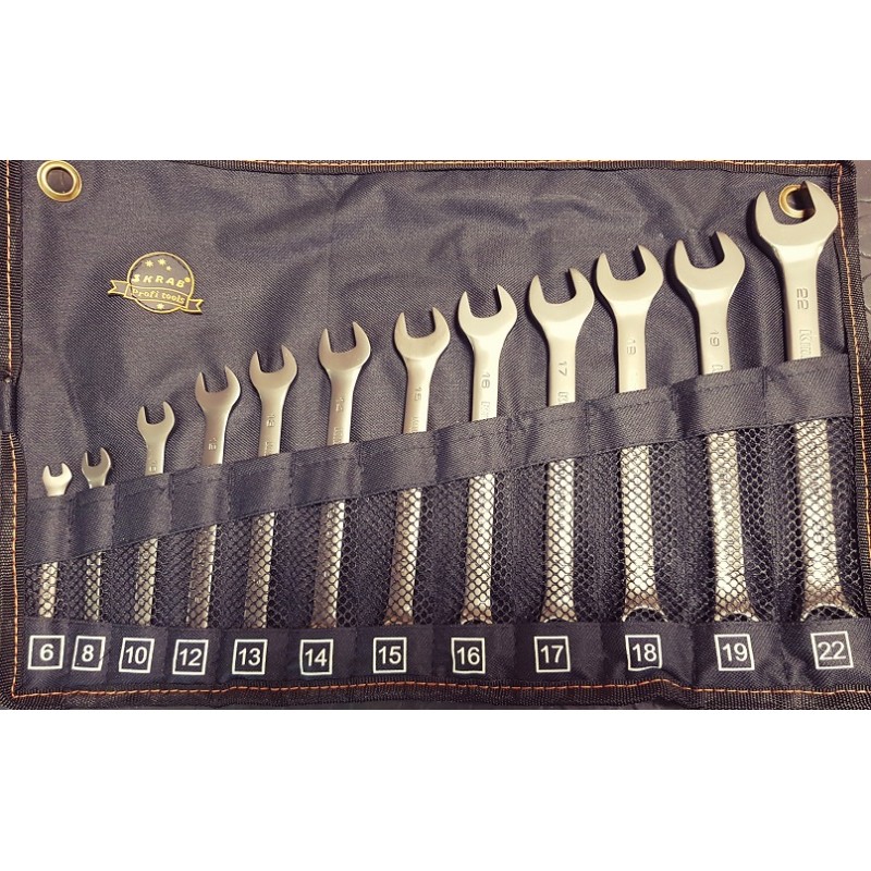 Profesionālas hroma-vanādija tērauda kombinācijas atslēgas. Komplektā 12 gab: 6-8-10-12-13-14-15-16-17-18-19-22 mm