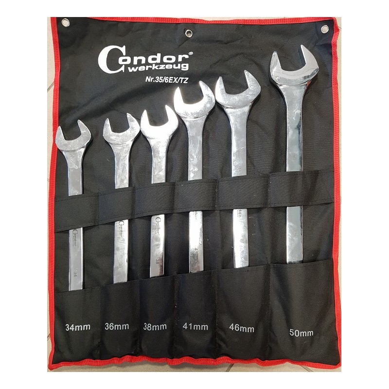 Hrom-vanādija tērauds Iekļauts: 34–445 mm 36–455 mm 38–470 mm 41–500 mm 46–545 mm 50 mm - 600 mm Apvienojiet: atvērto galu un gredzena galu. Condor Werkzeuge Vācija