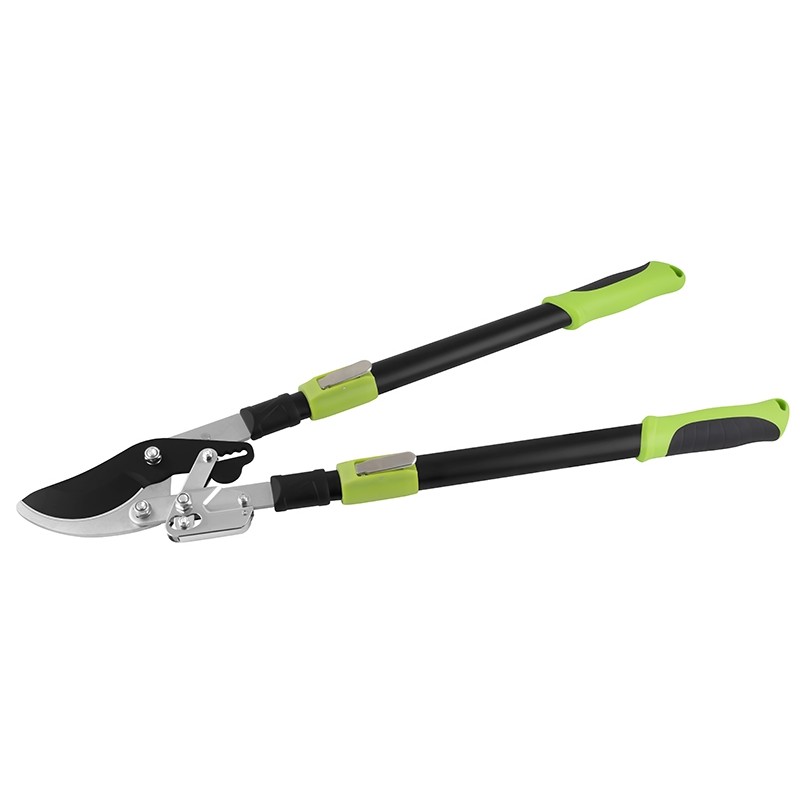 Dakšu šķēres ar bīdāmiem asmeņiem ar pakāpienu mehānismu, teleskopiskiem rokturiem 70-101 cm. Maksimālais zaru biezums ir 45 mm